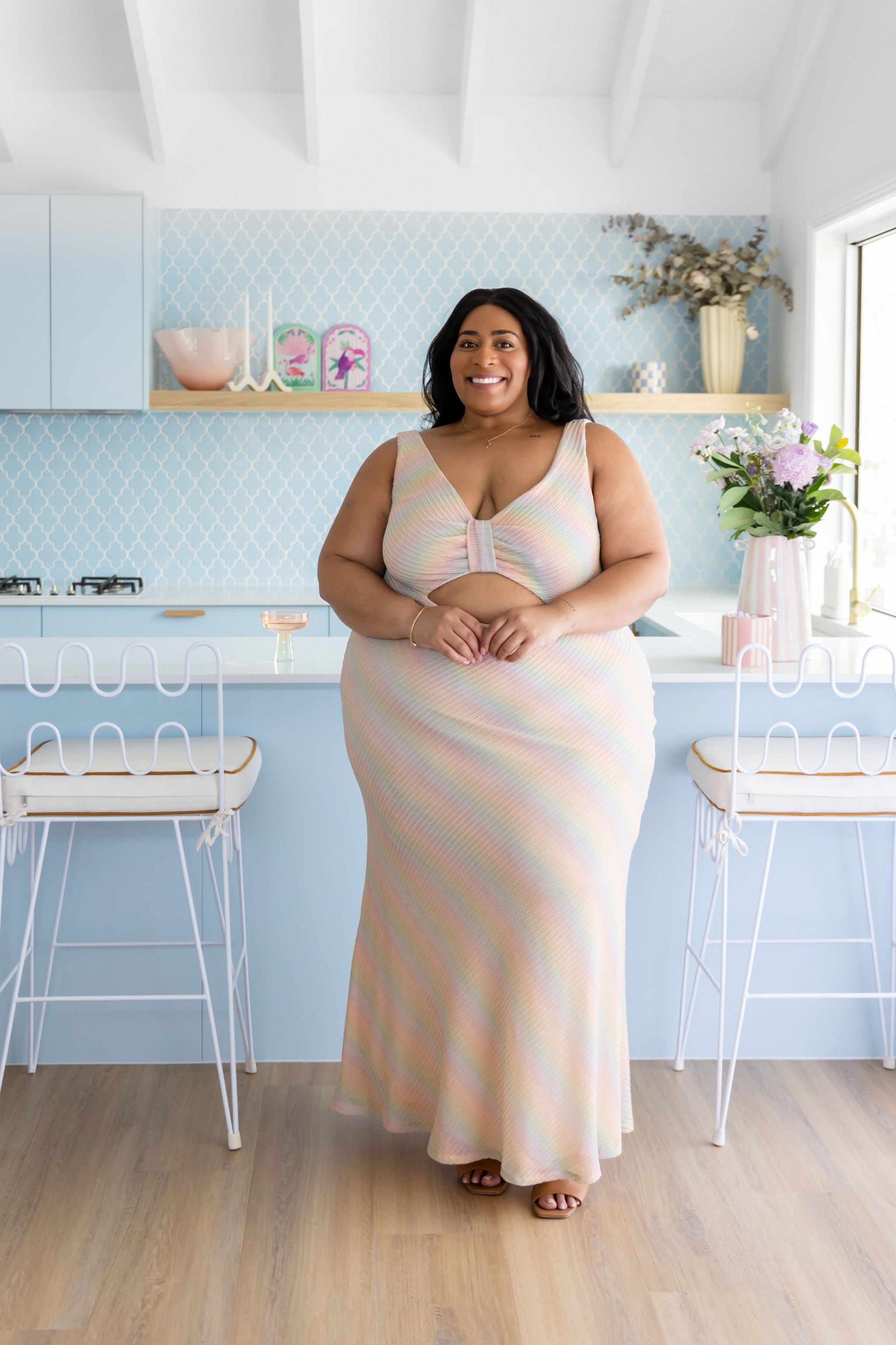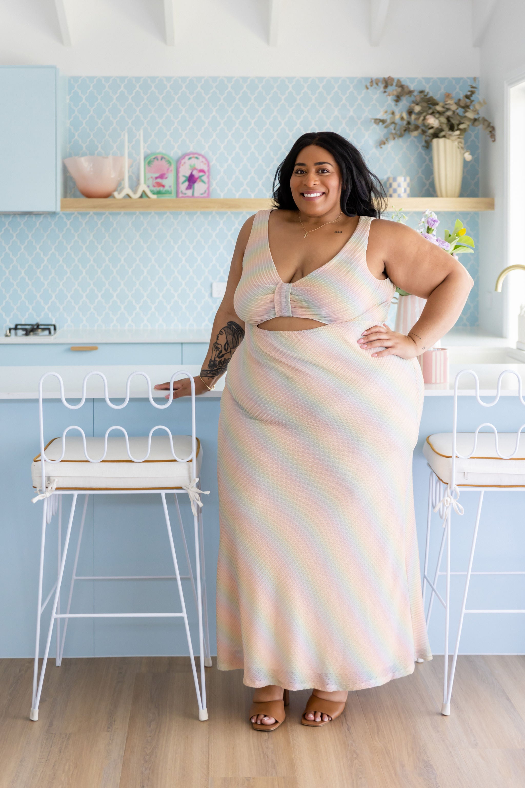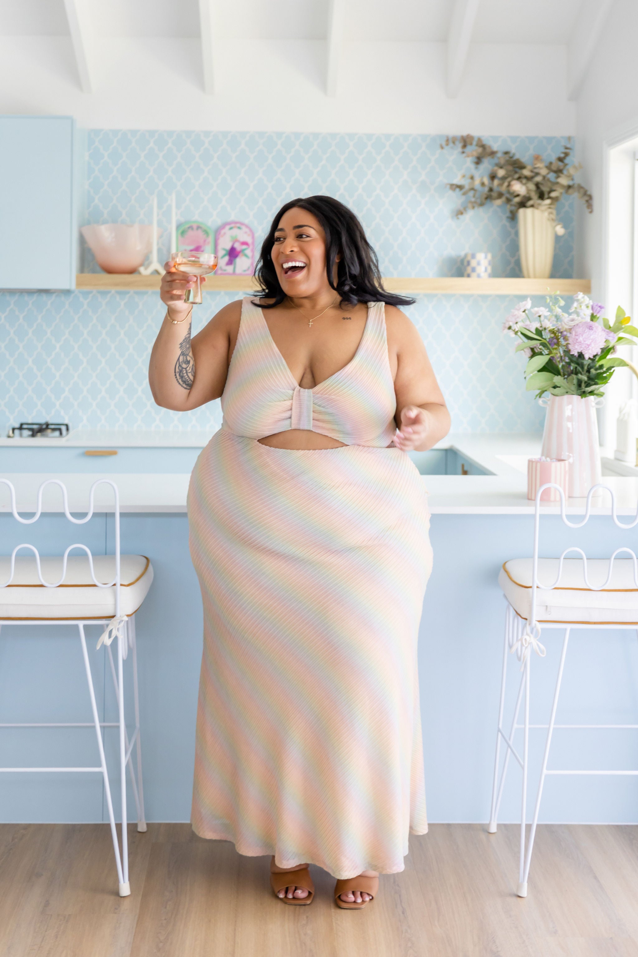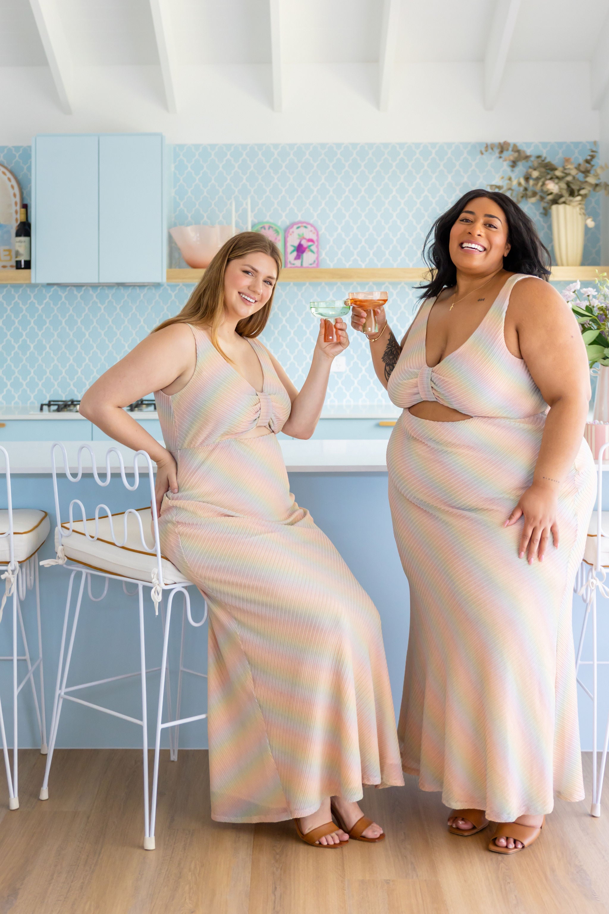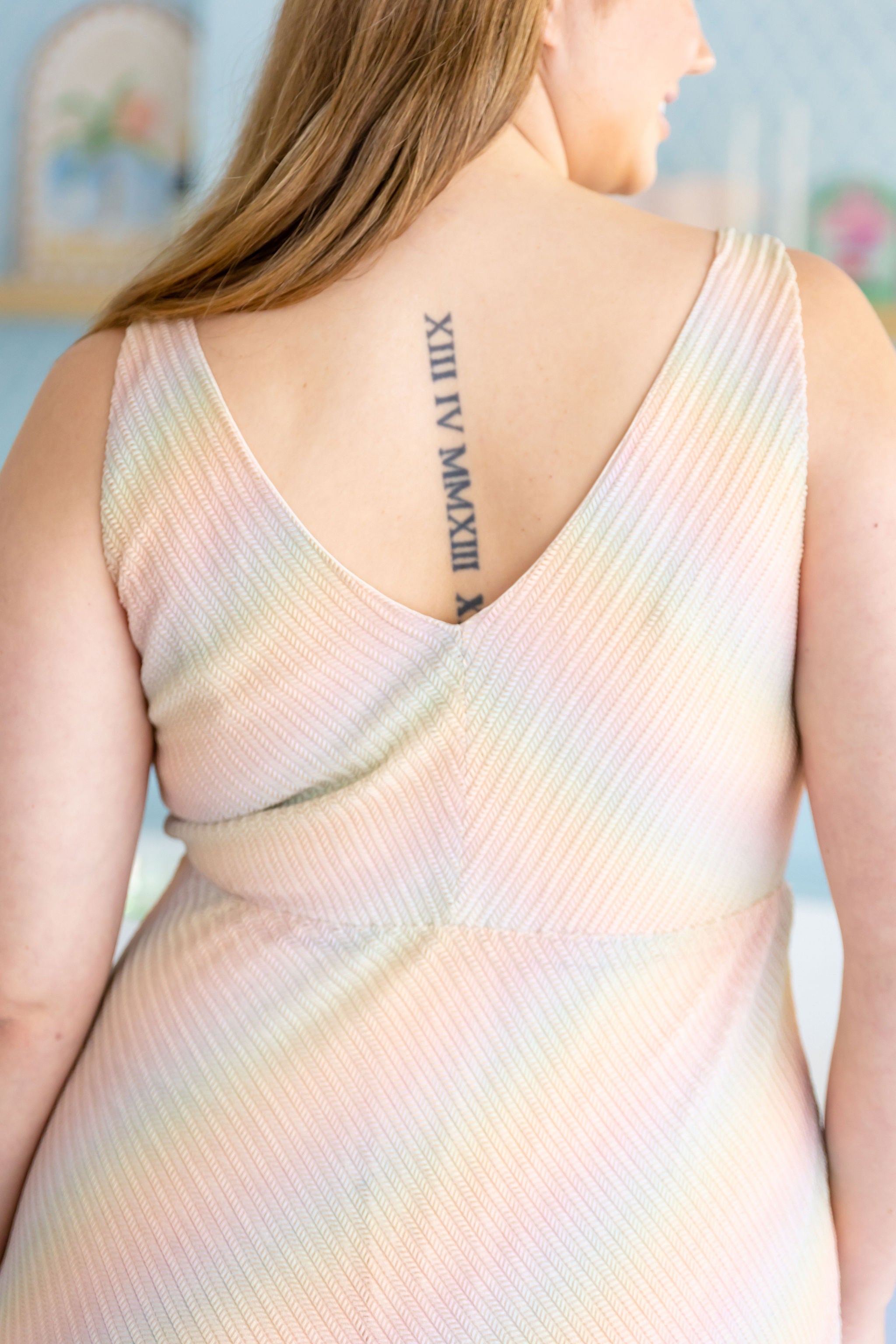 Shine bright in the Tallulah Dress in Metallic Rainbow! This eveningwear masterpiece features a V-neckline, ruched bust detail, side split, and a body-shaping fit. Made from super stretchy jacquard with stunning metallic rainbow foil, it’s the perfect formal dress for a dazzling look. Made for all body types, as the fabric falls exactly into place!