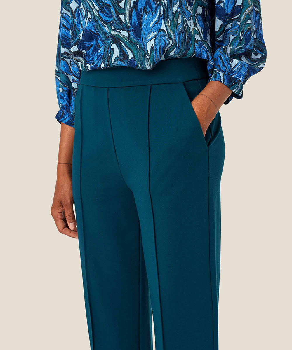 In a rich blue hue, the Pianas Wide Leg Pants feature a flattering full-length wide leg design that offers both comfort and a chic silhouette. The pull-on style ensures easy wear, making them a go-to choice for any occasion. Perfect for dressing up with a blouse and heels or keeping it casual with a simple tee and flats.