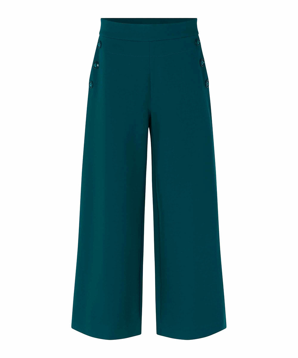 Stylish design, decorative buttons and effortless comfort. There are many things to love about these pants. It's made from a heavy jersey fabric with plenty of leg room, an elasticated waist and side pockets. Also note the perfect cropped length that adds just a peek at the ankles. Style the pants with a patterned top, white shirt, or chunky knitwear — it goes with everything.