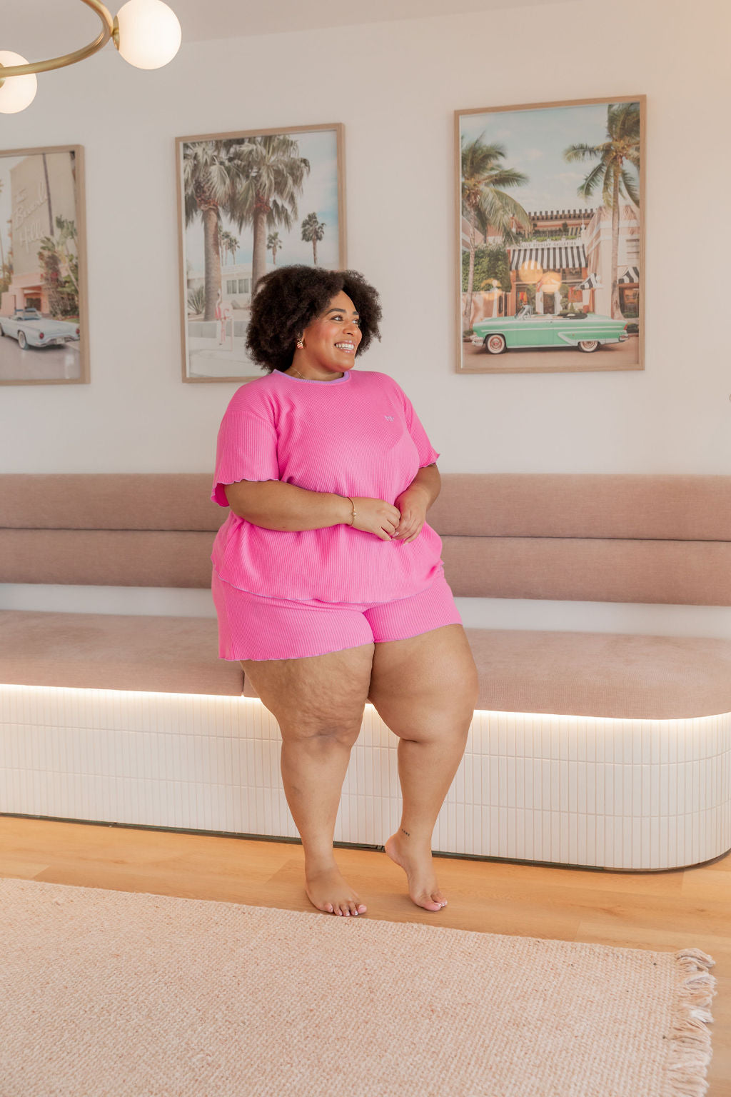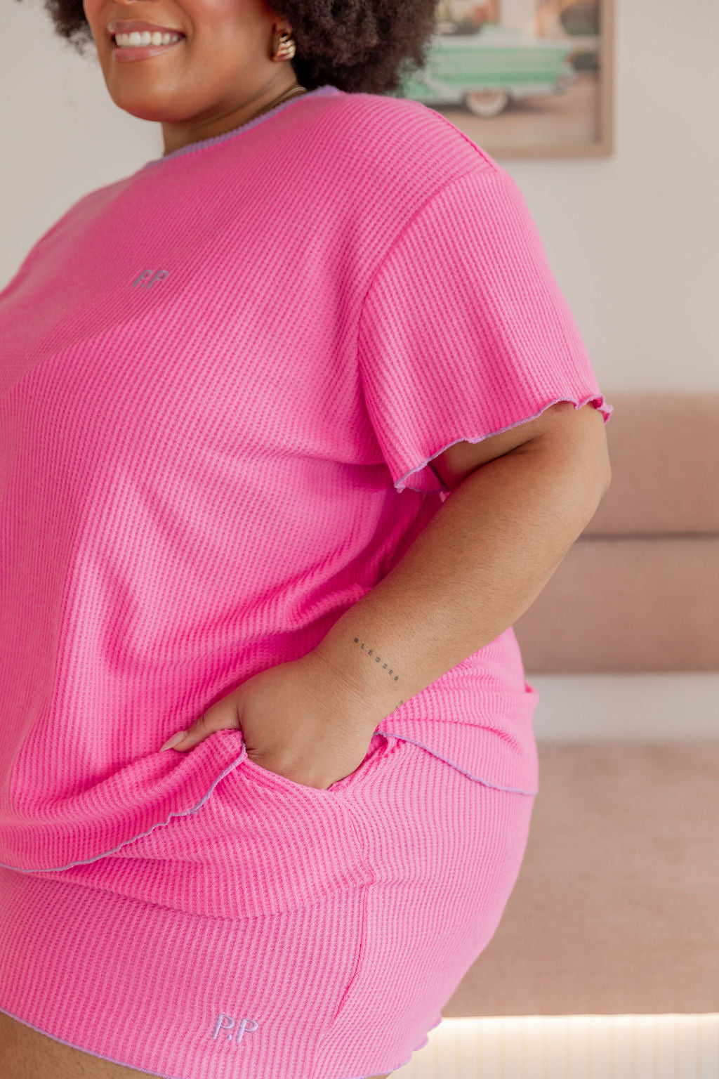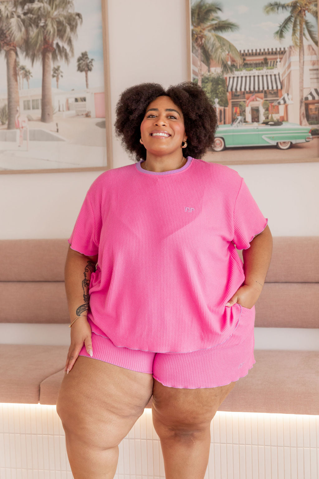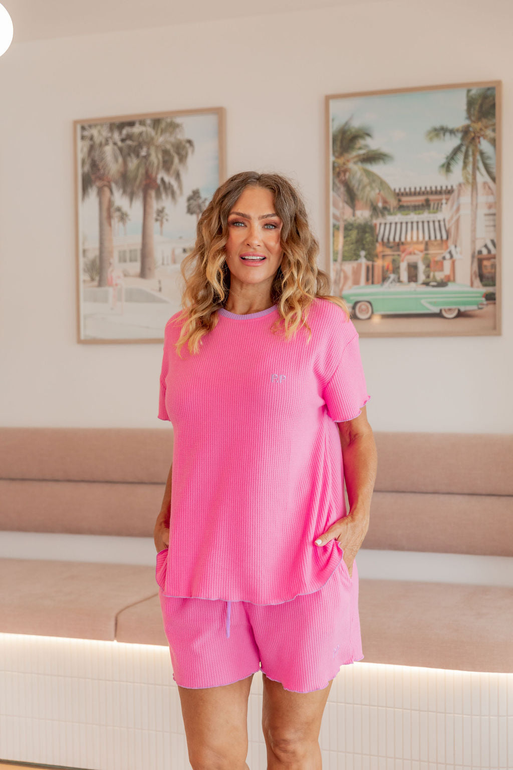 The Georgina Waffle Shorts are just as dreamy, complete with a thick elastic waistband, an adjustable drawstring for a custom fit, and convenient pockets. The frilled hem ties the set together for a playful yet relaxed vibe.