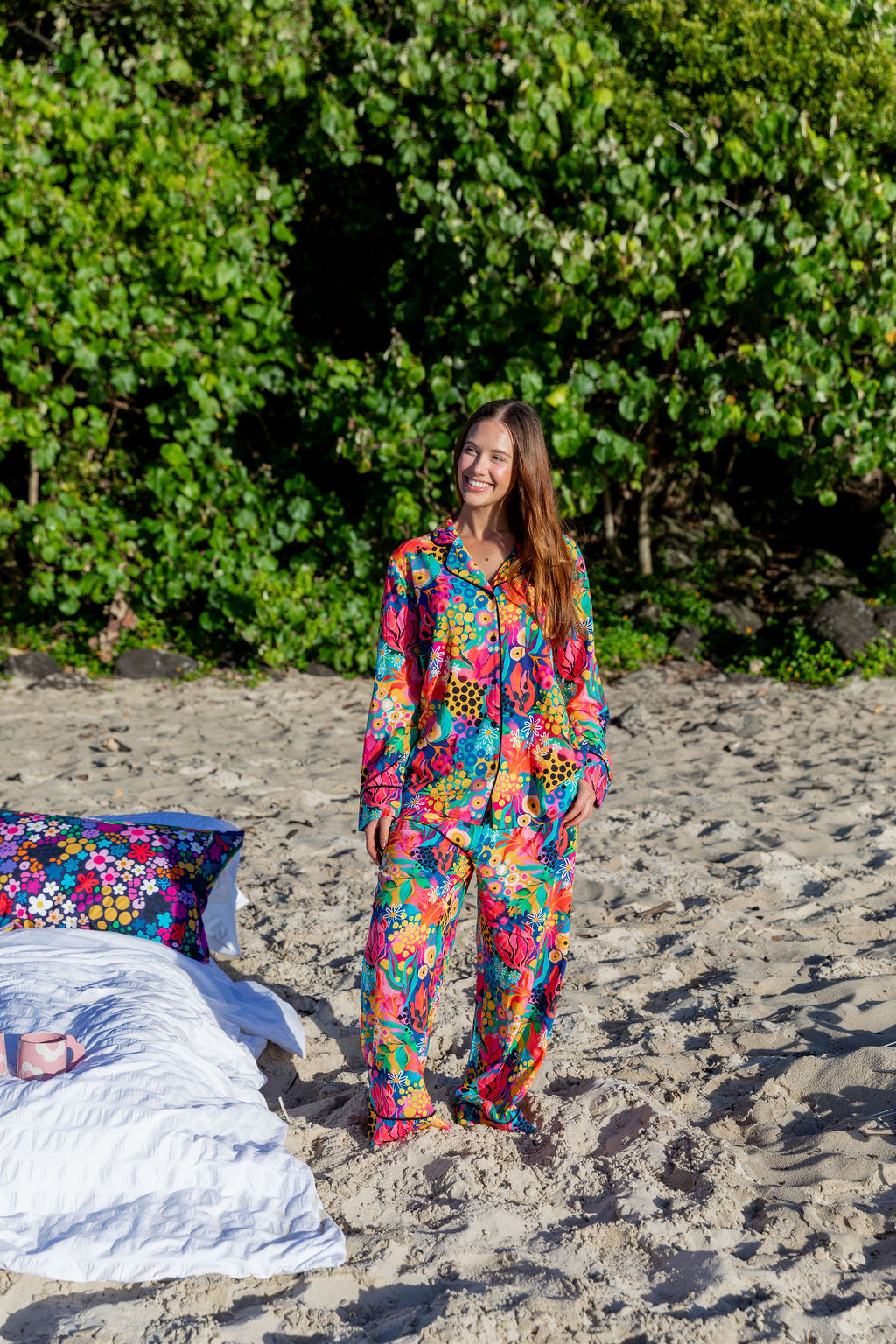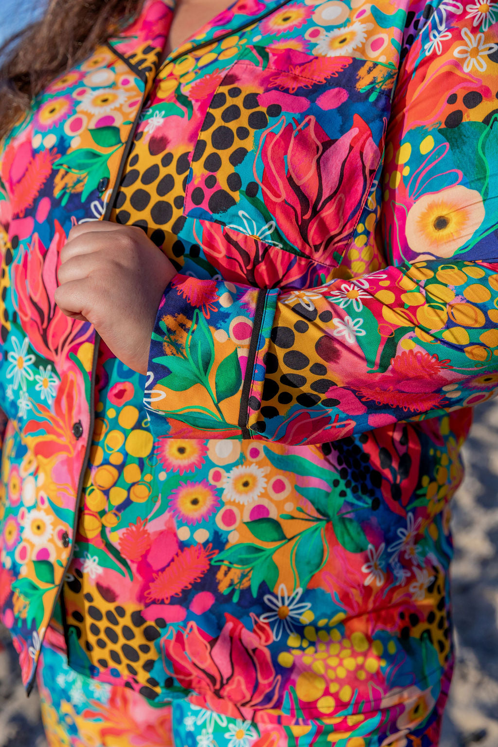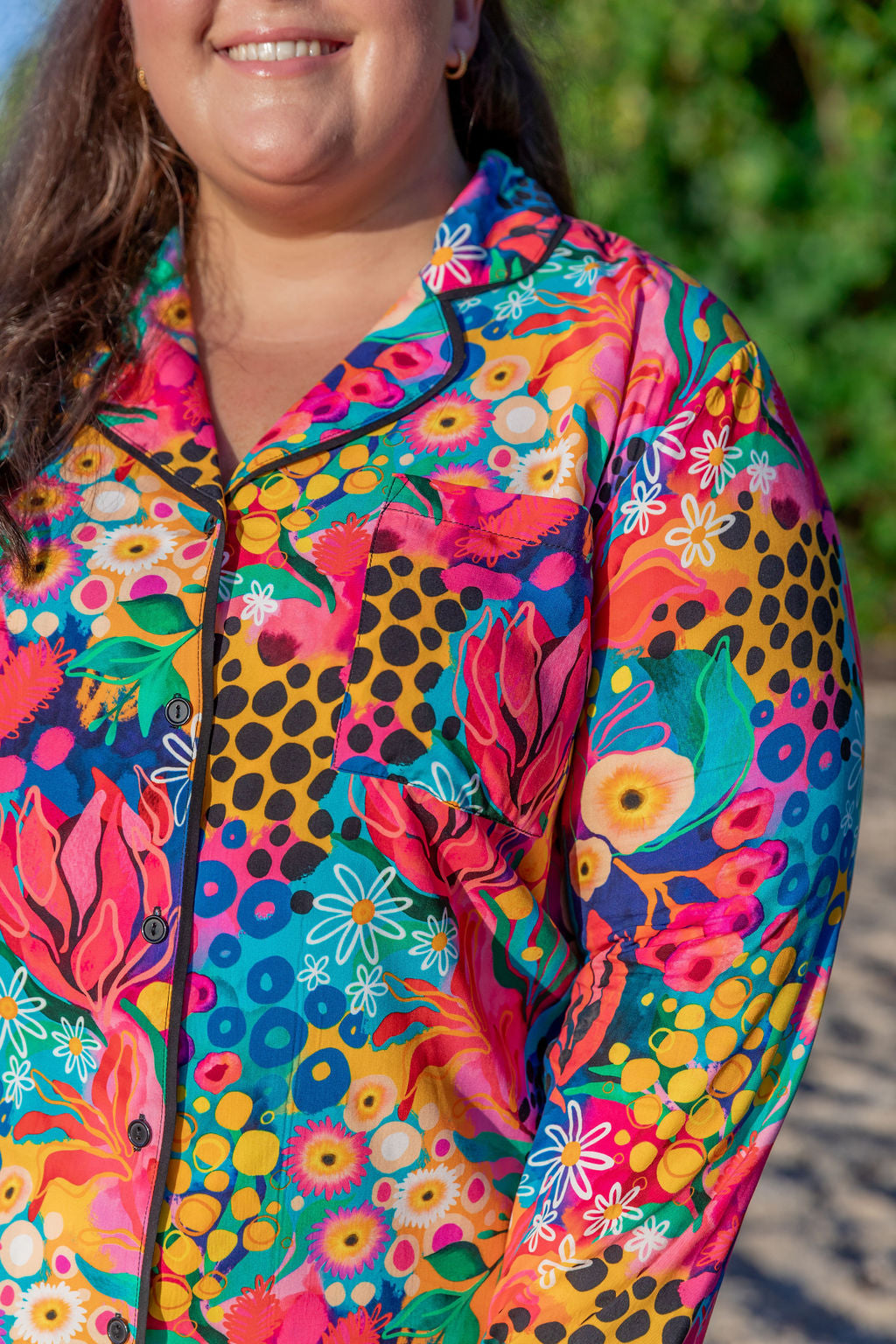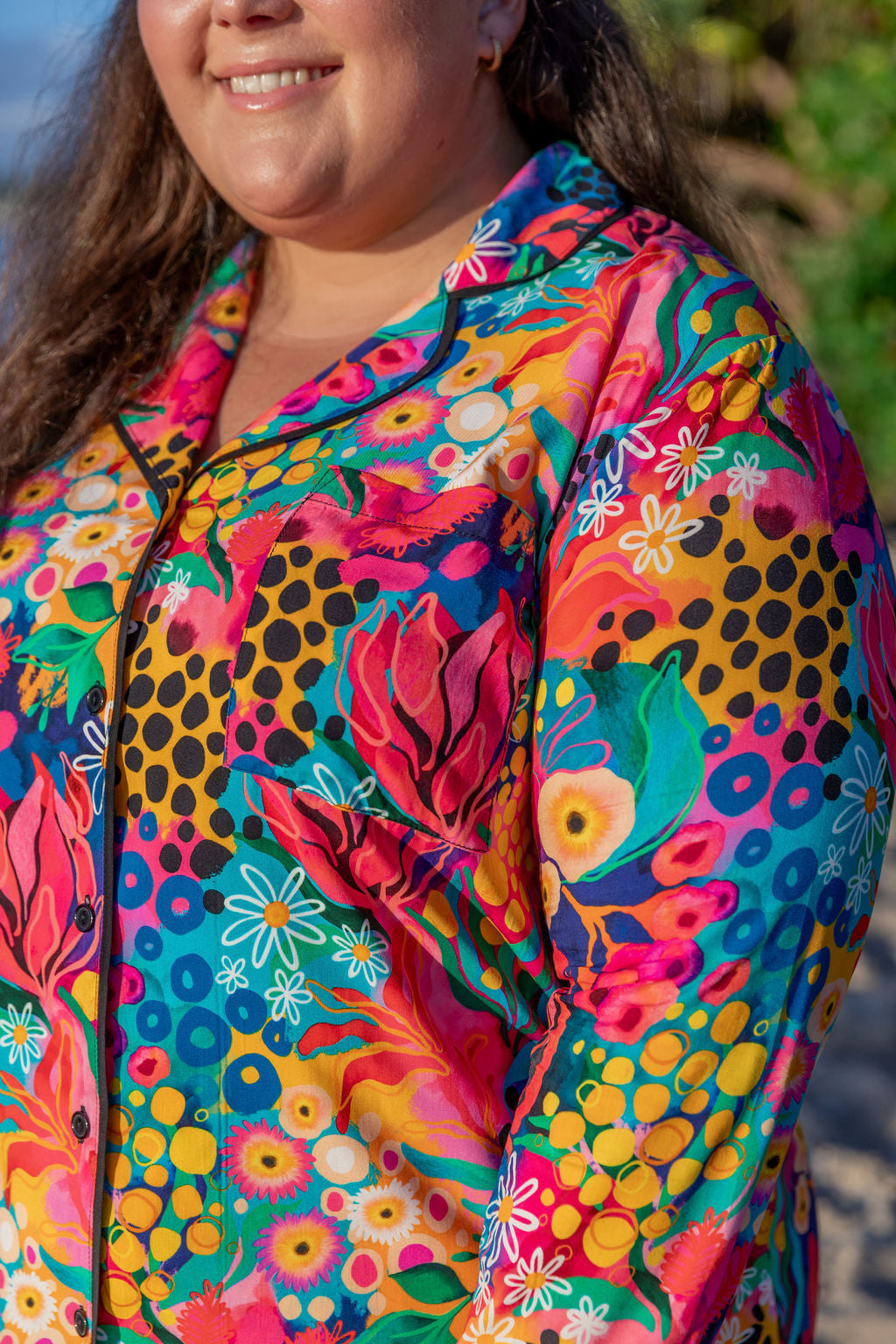 Wrapped in the bold and playful Matilda print, this set is your go-to for relaxed days and cozy nights. Available in sizes 6-30.