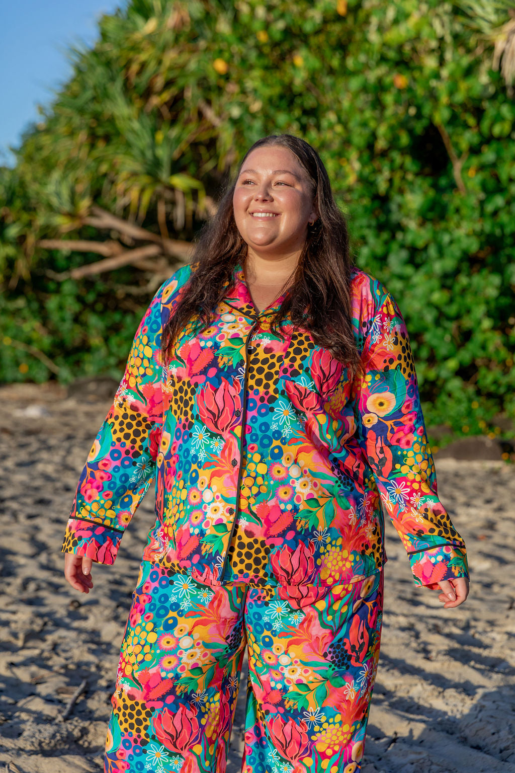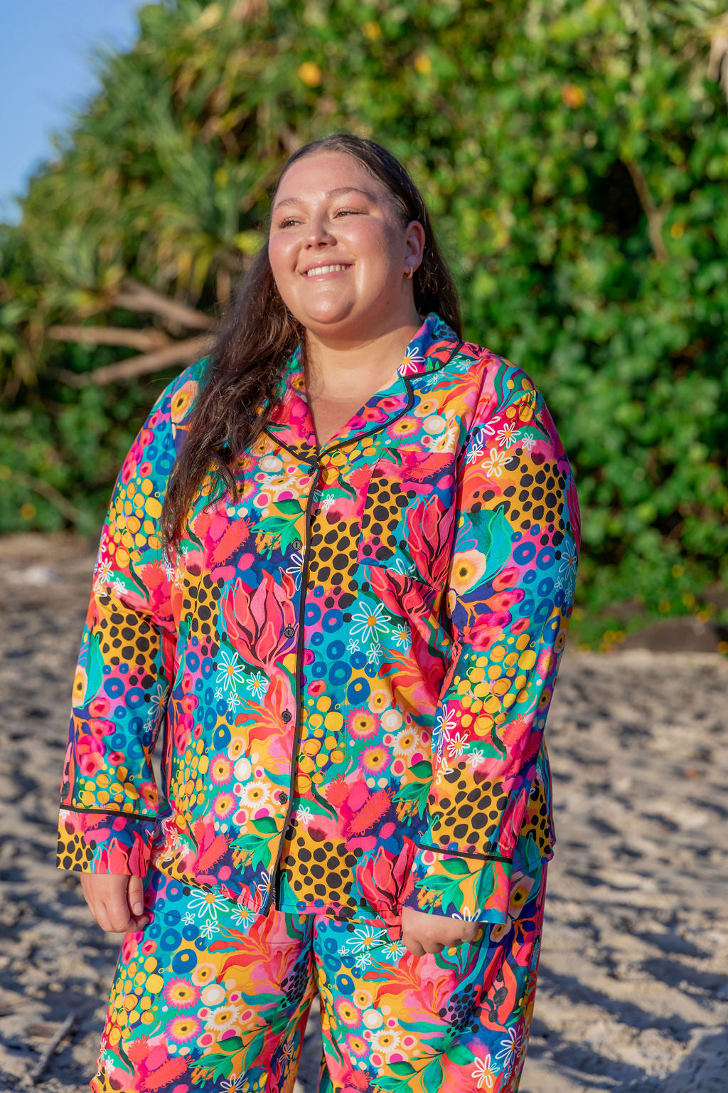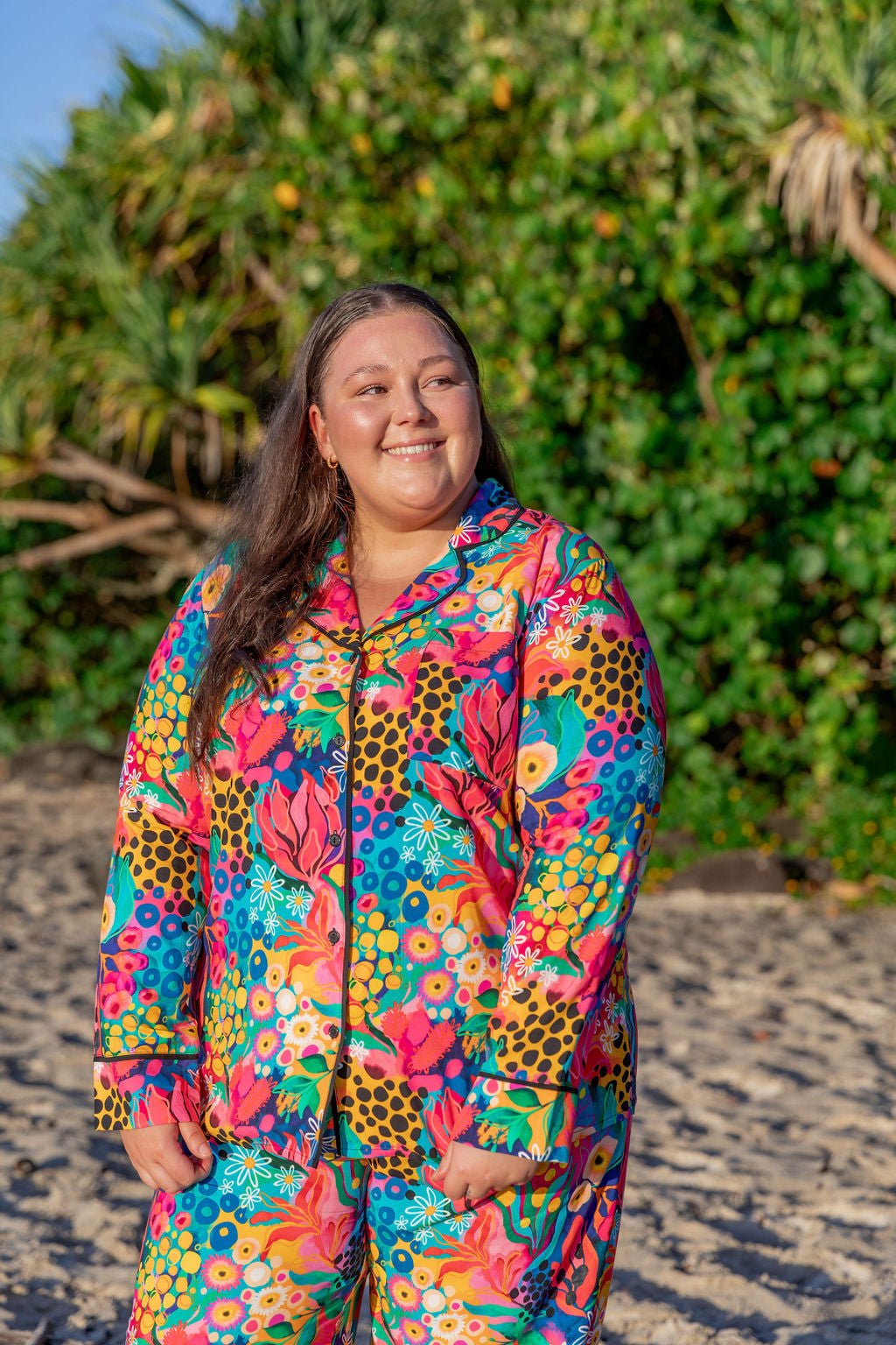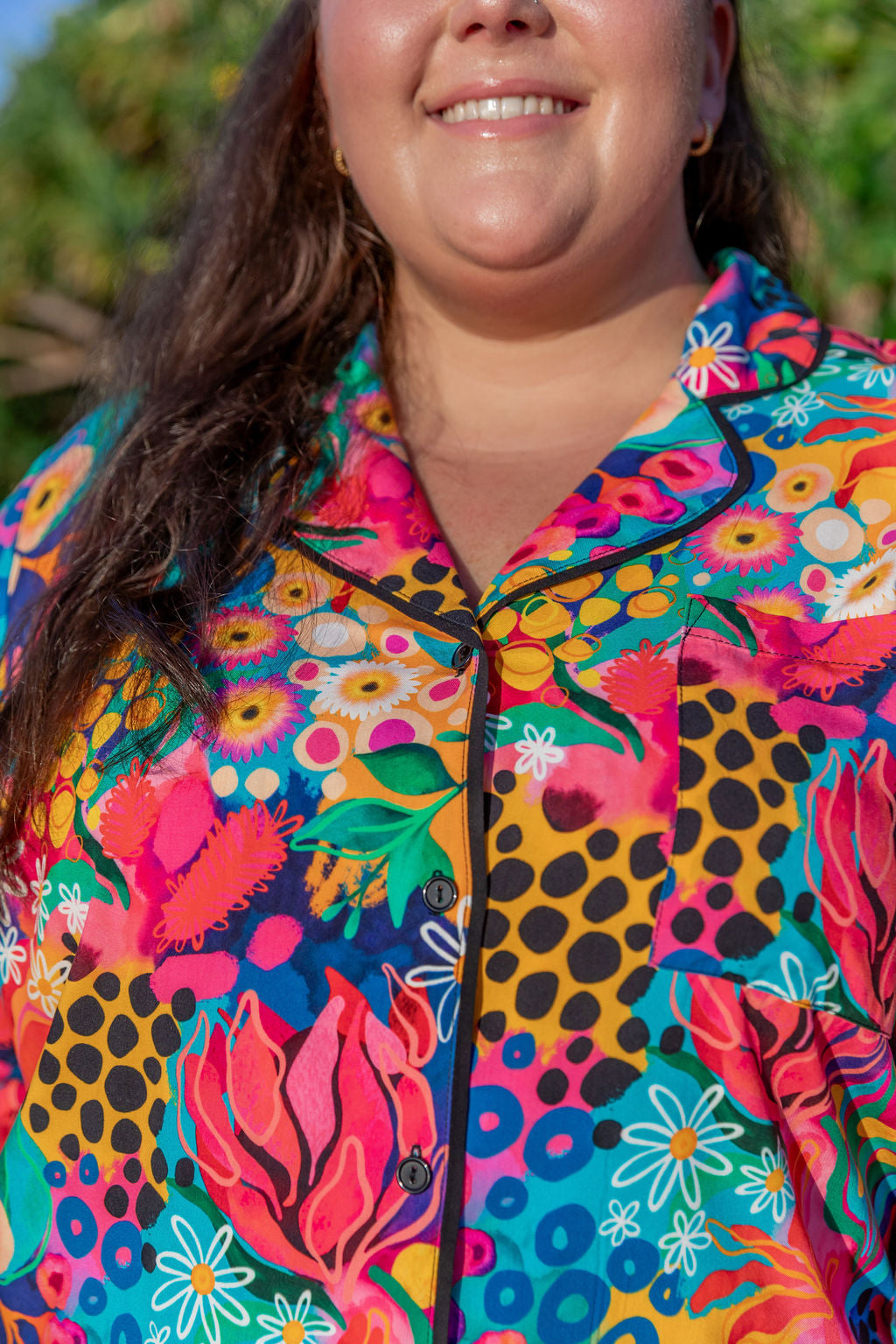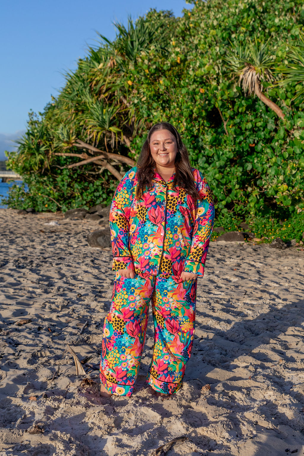 Wrapped in the bold and playful Matilda print, this set is your go-to for relaxed days and cozy nights. Available in sizes 6-30.