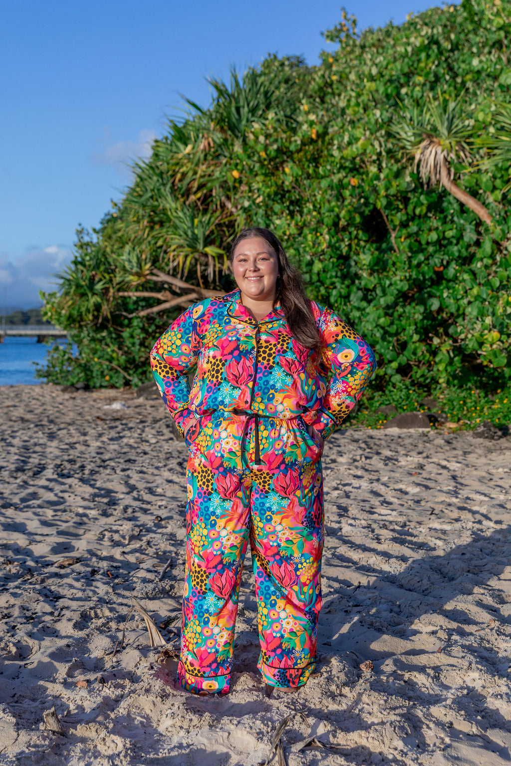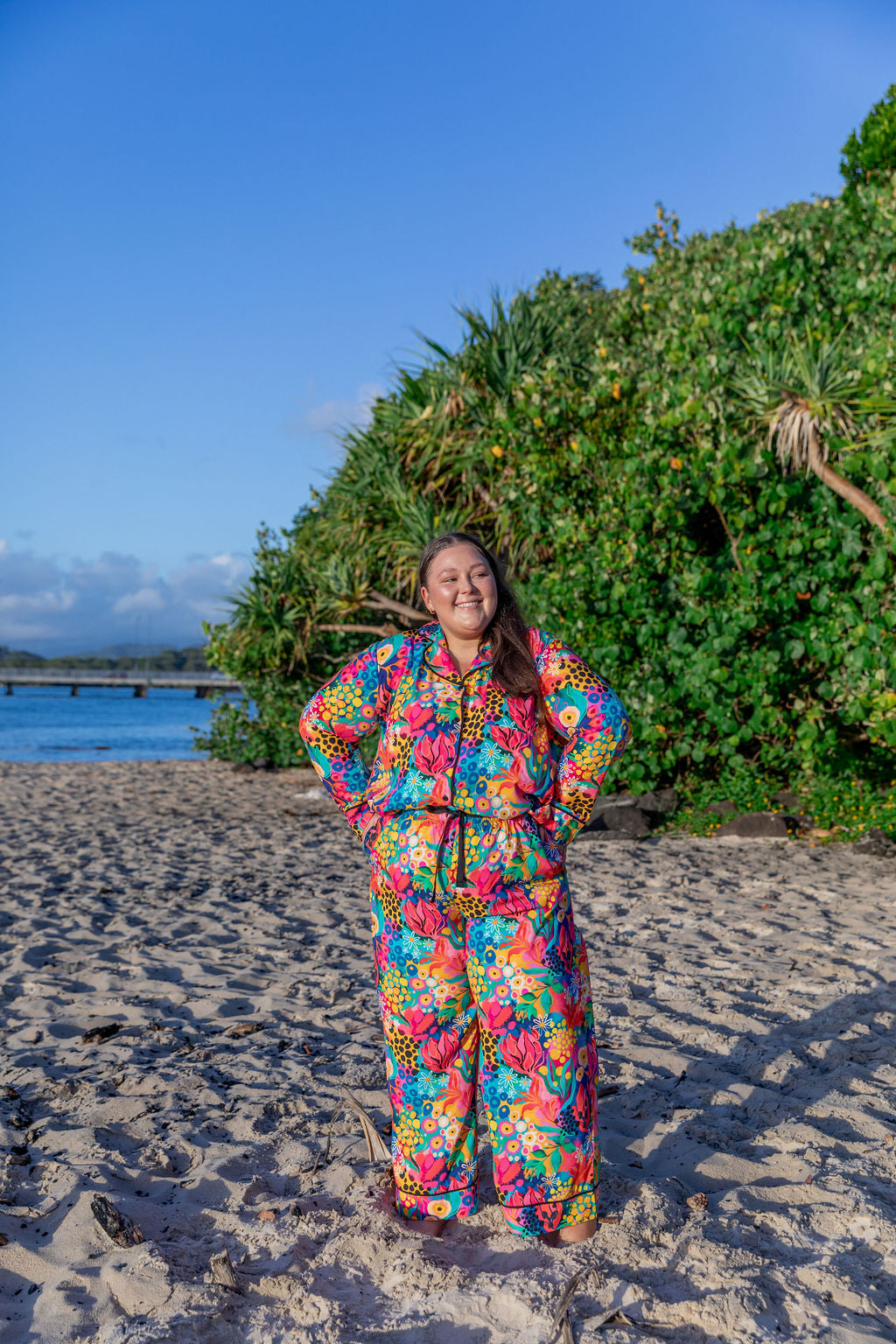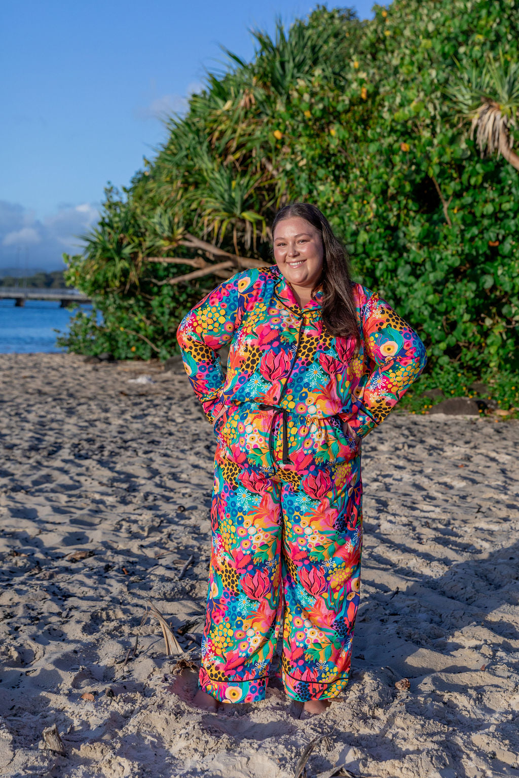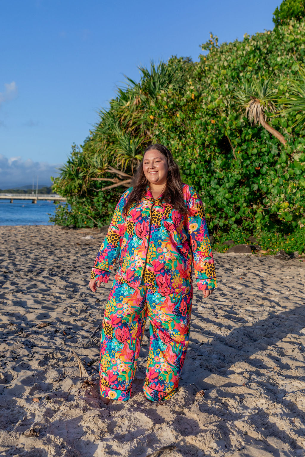 Wrapped in the bold and playful Matilda print, this set is your go-to for relaxed days and cozy nights. Available in sizes 6-30.