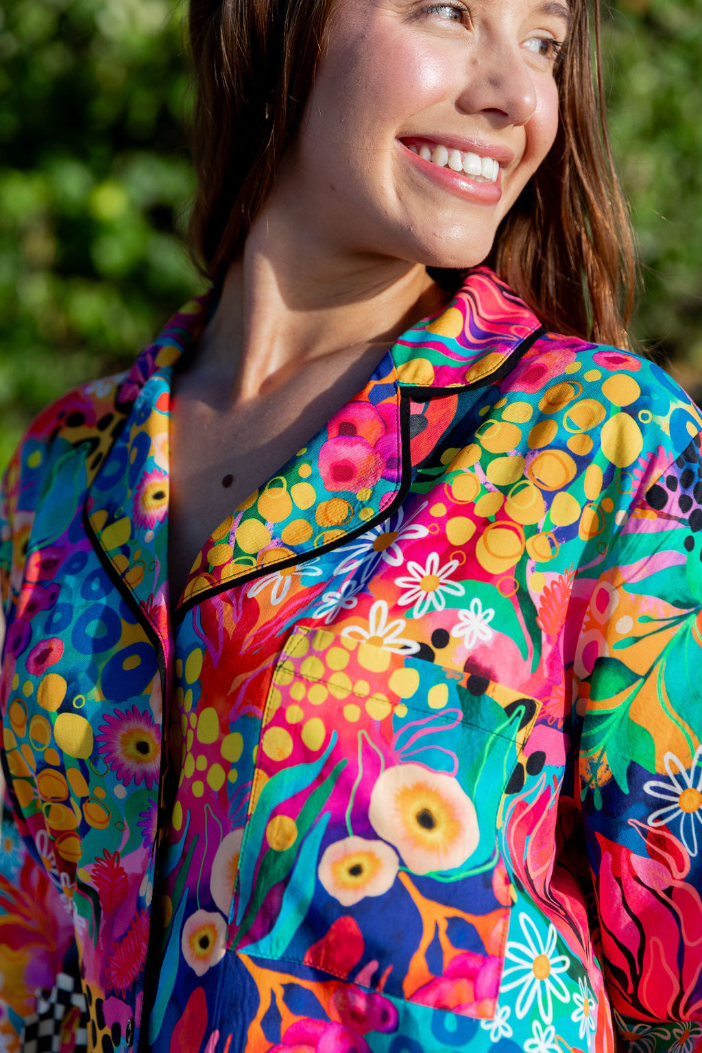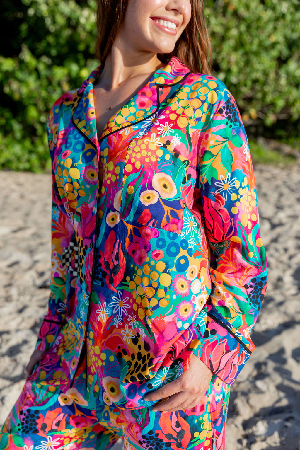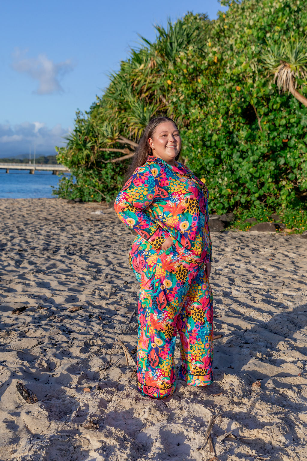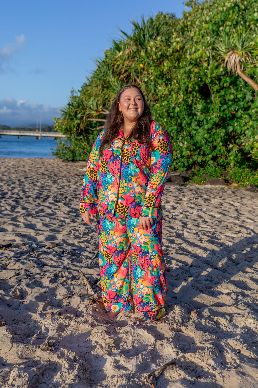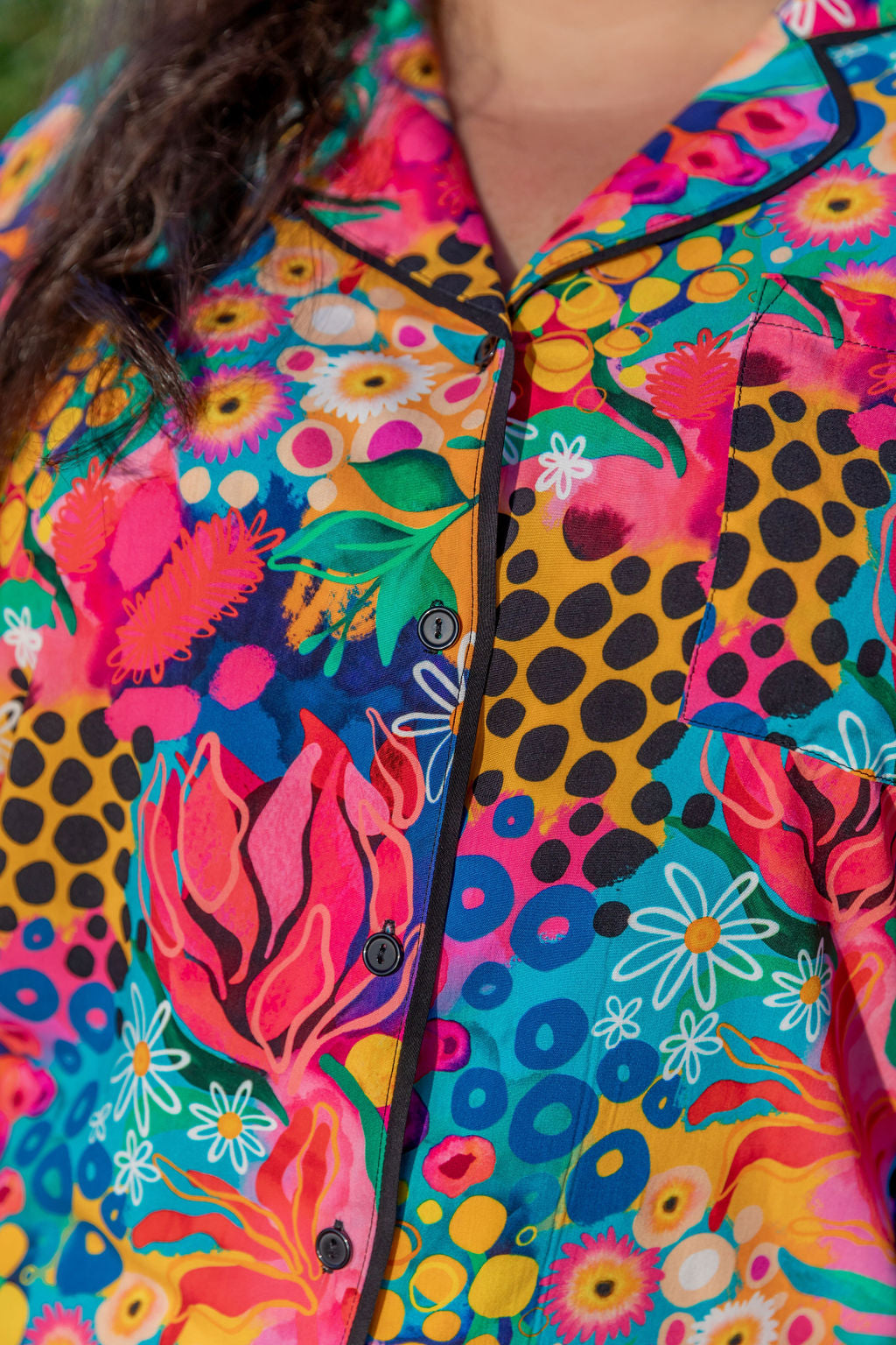 Wrapped in the bold and playful Matilda print, this set is your go-to for relaxed days and cozy nights. Available in sizes 6-30.