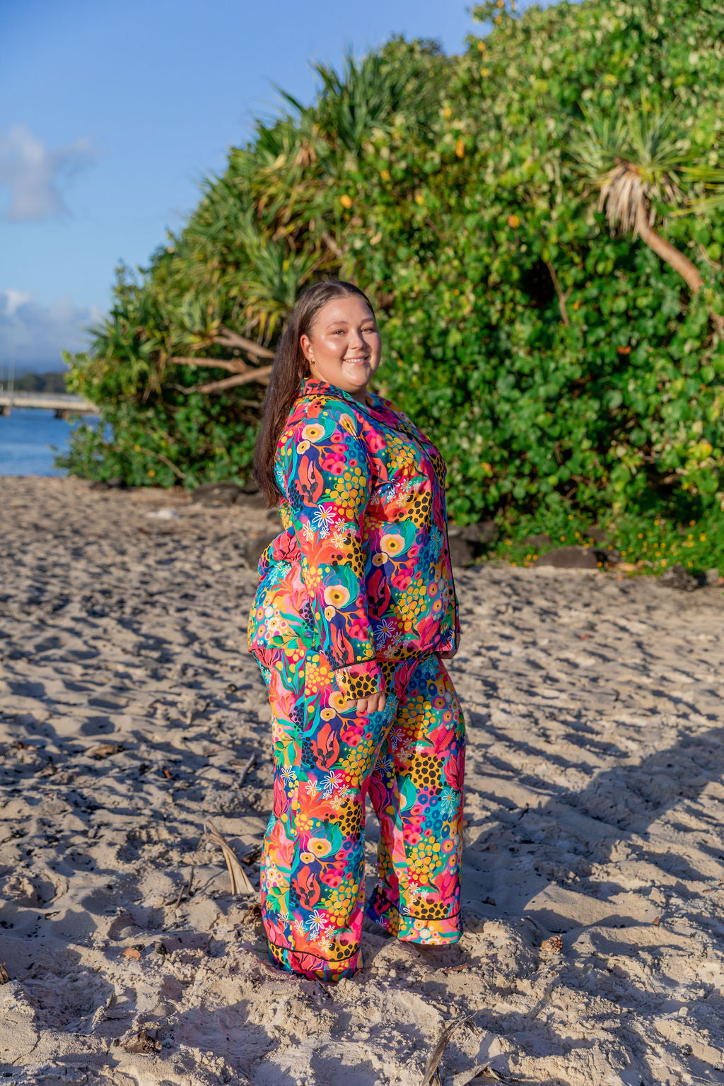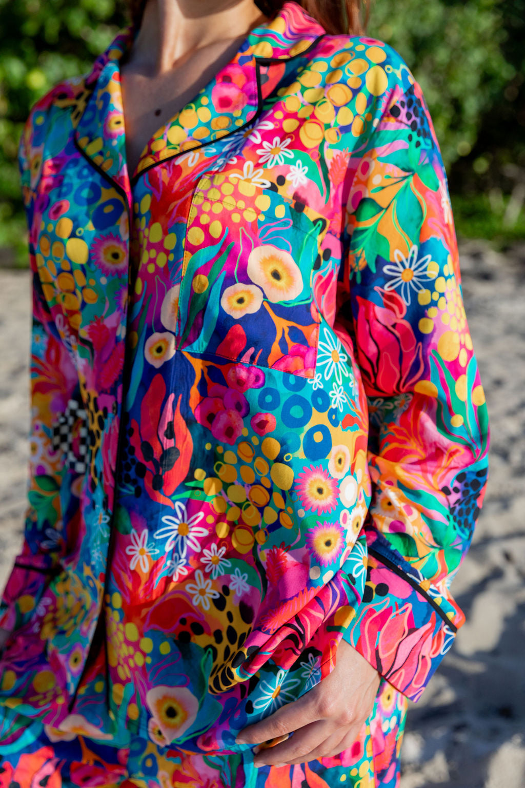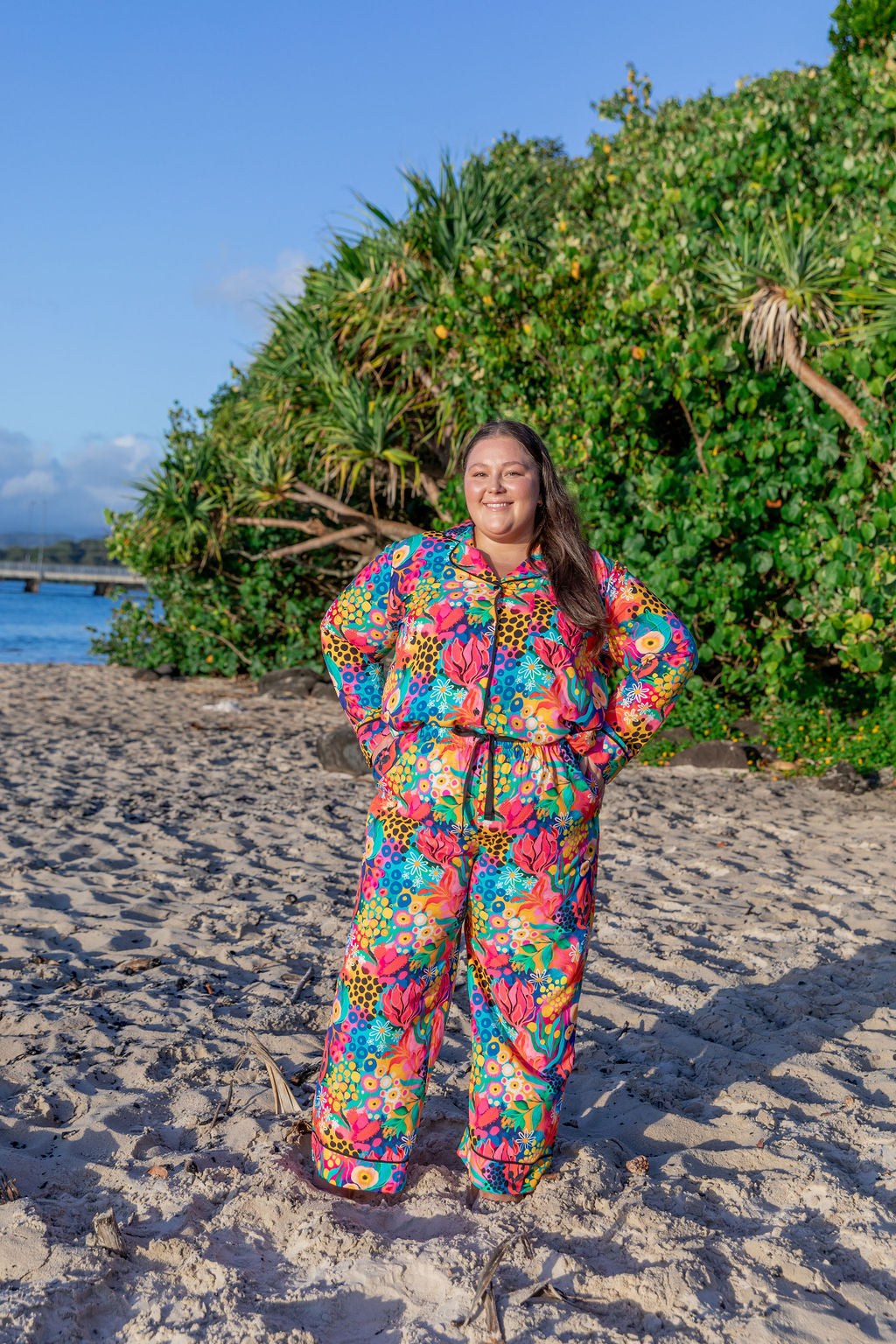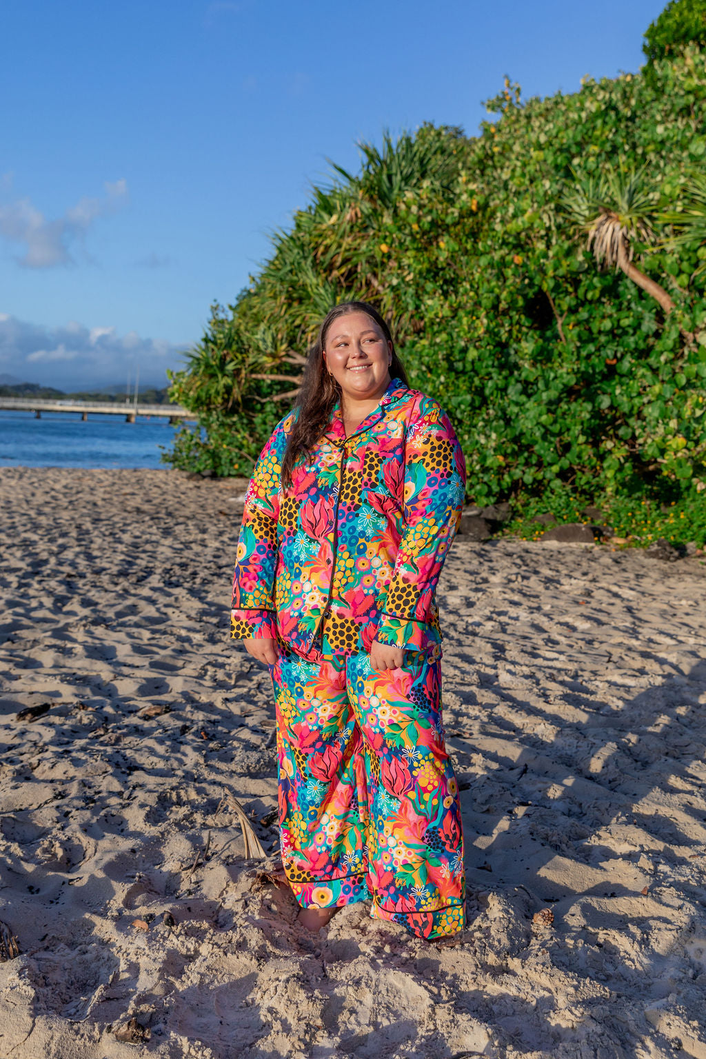 Wrapped in the bold and playful Matilda print, this set is your go-to for relaxed days and cozy nights. Available in sizes 6-30.