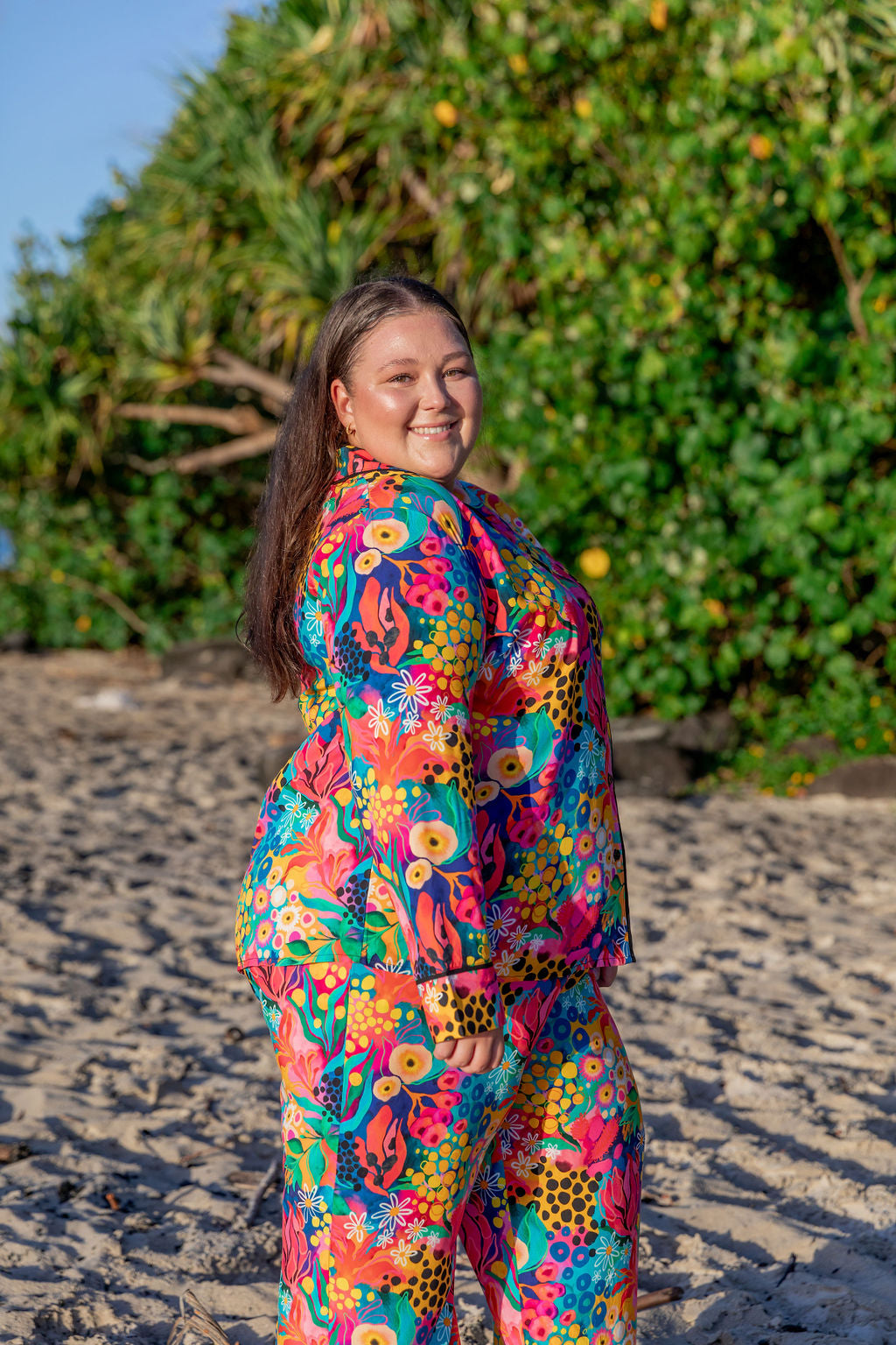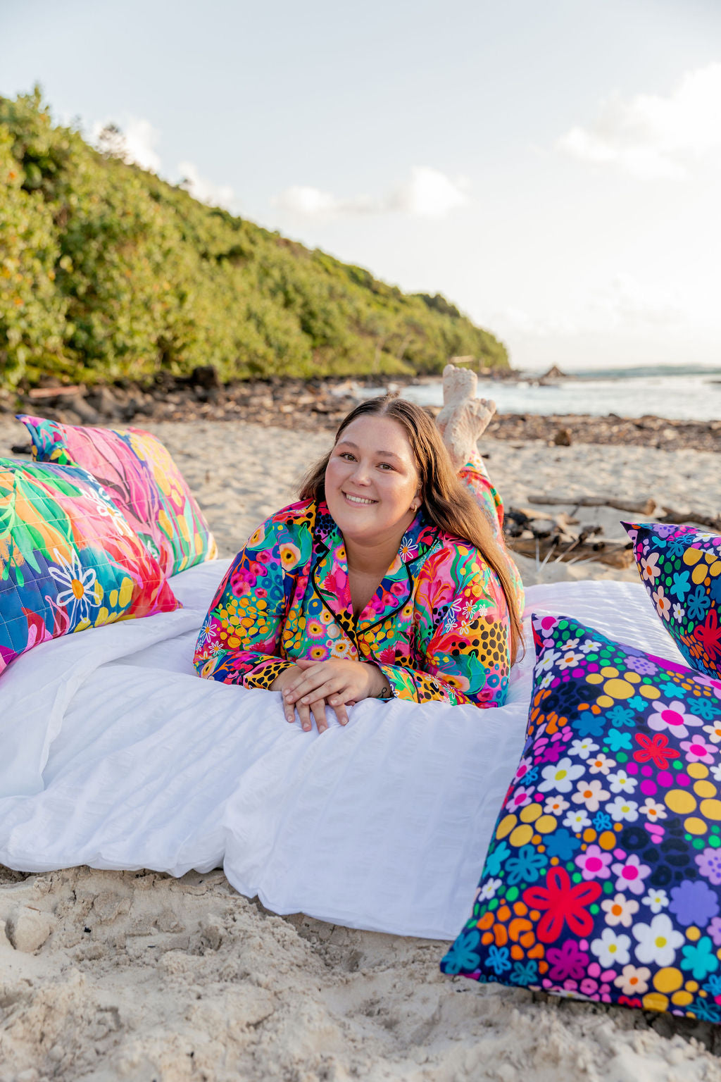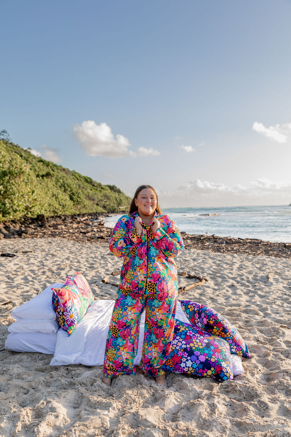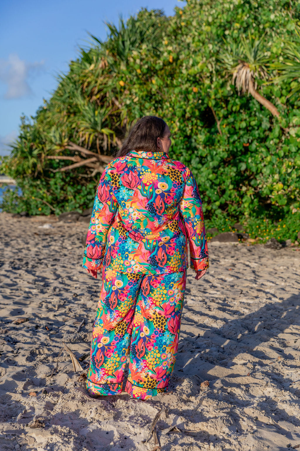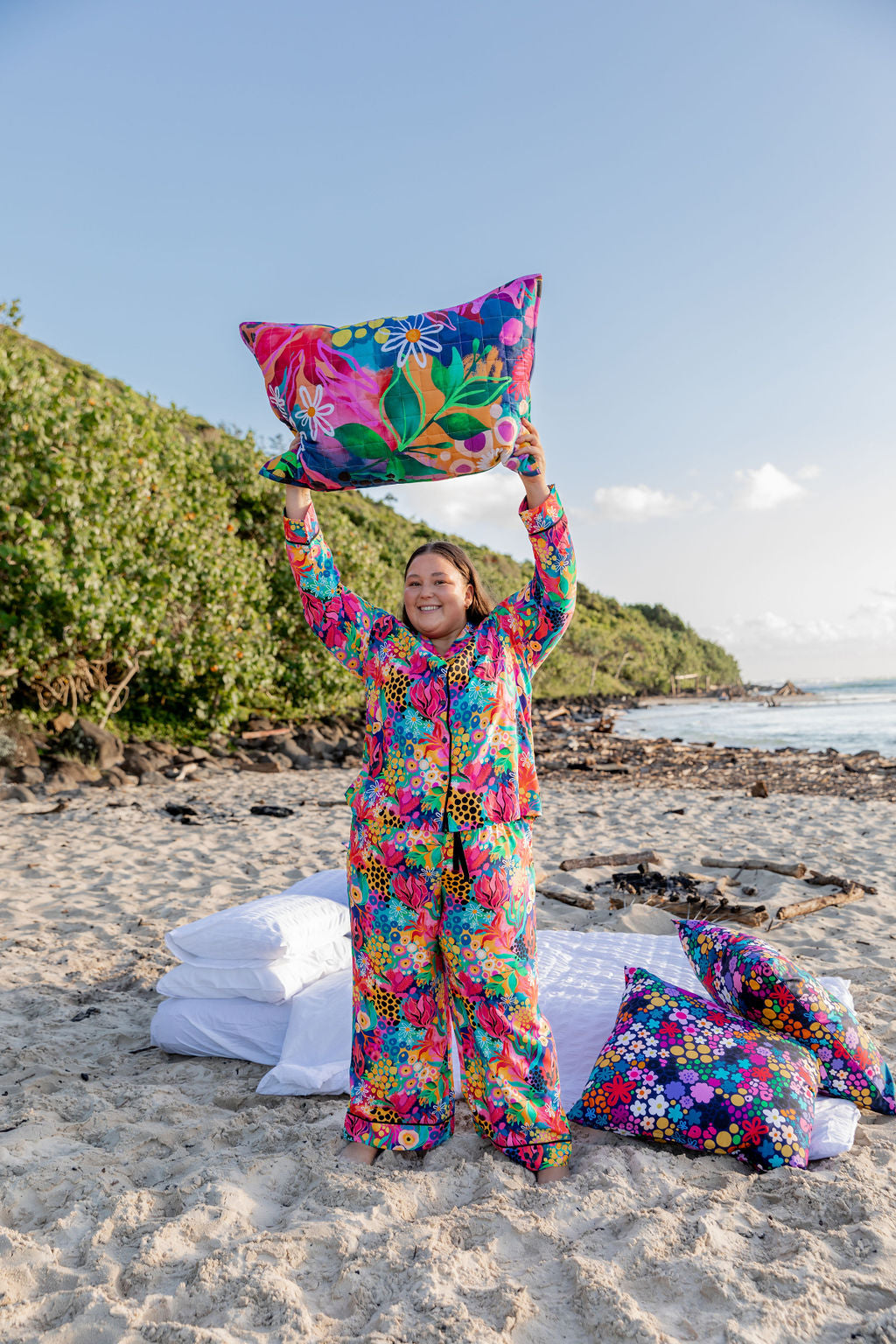 Wrapped in the bold and playful Matilda print, this set is your go-to for relaxed days and cozy nights. Available in sizes 6-30.