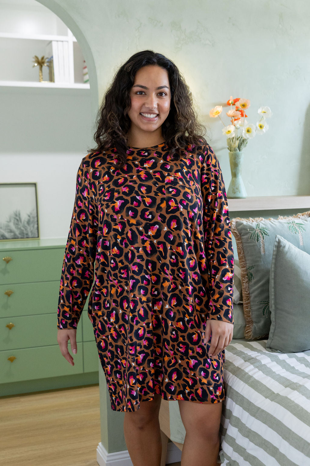 Get wild and stay cozy in the Wild L/S Nightie in Bronze Leopard by Kasey Rainbow!