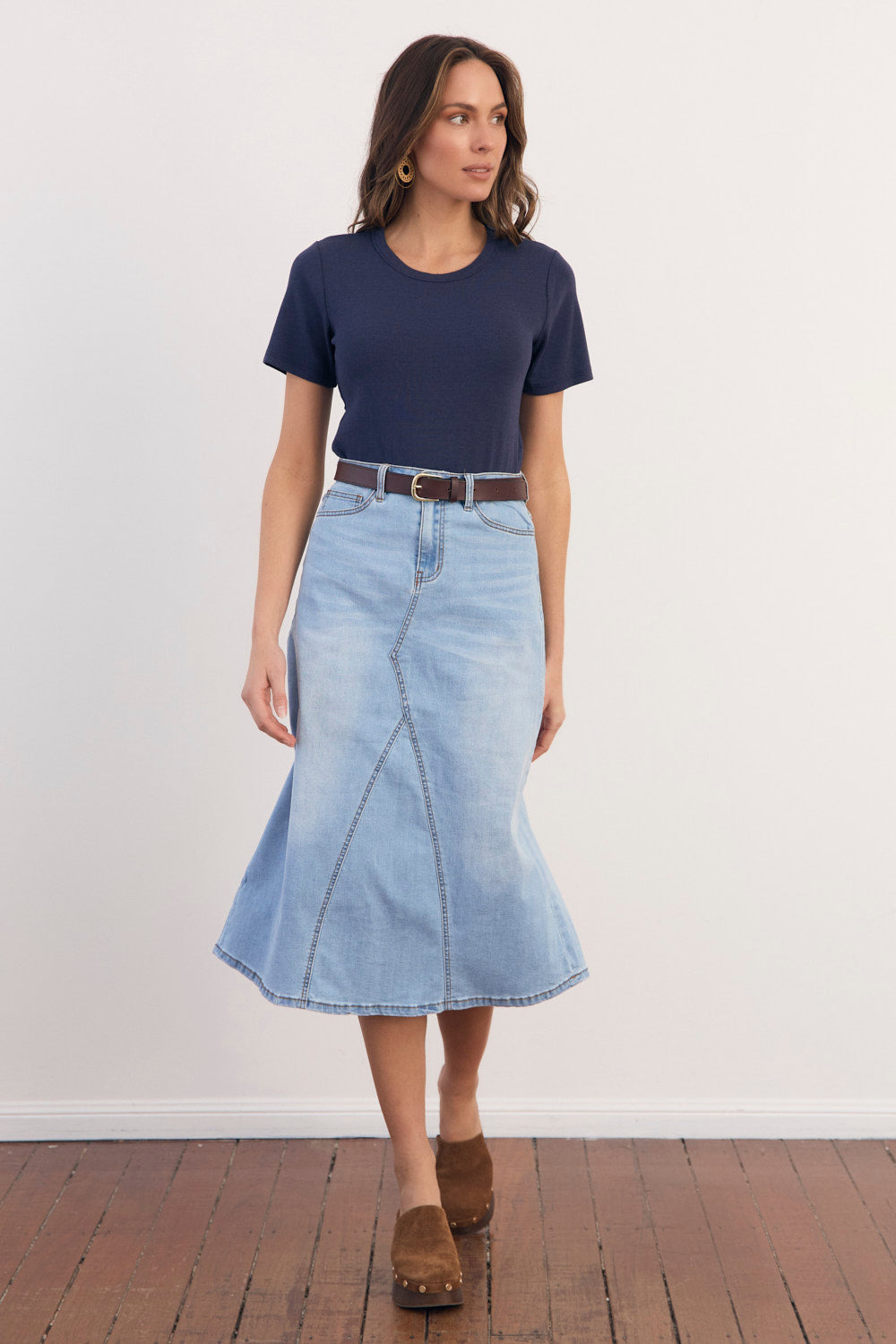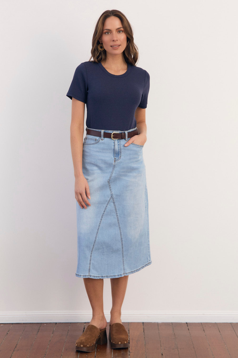 Meet Adrift's staple Ribbed Tee from the Basics Range in classic navy—a must-have essential with a scooped neckline and cotton stretch.